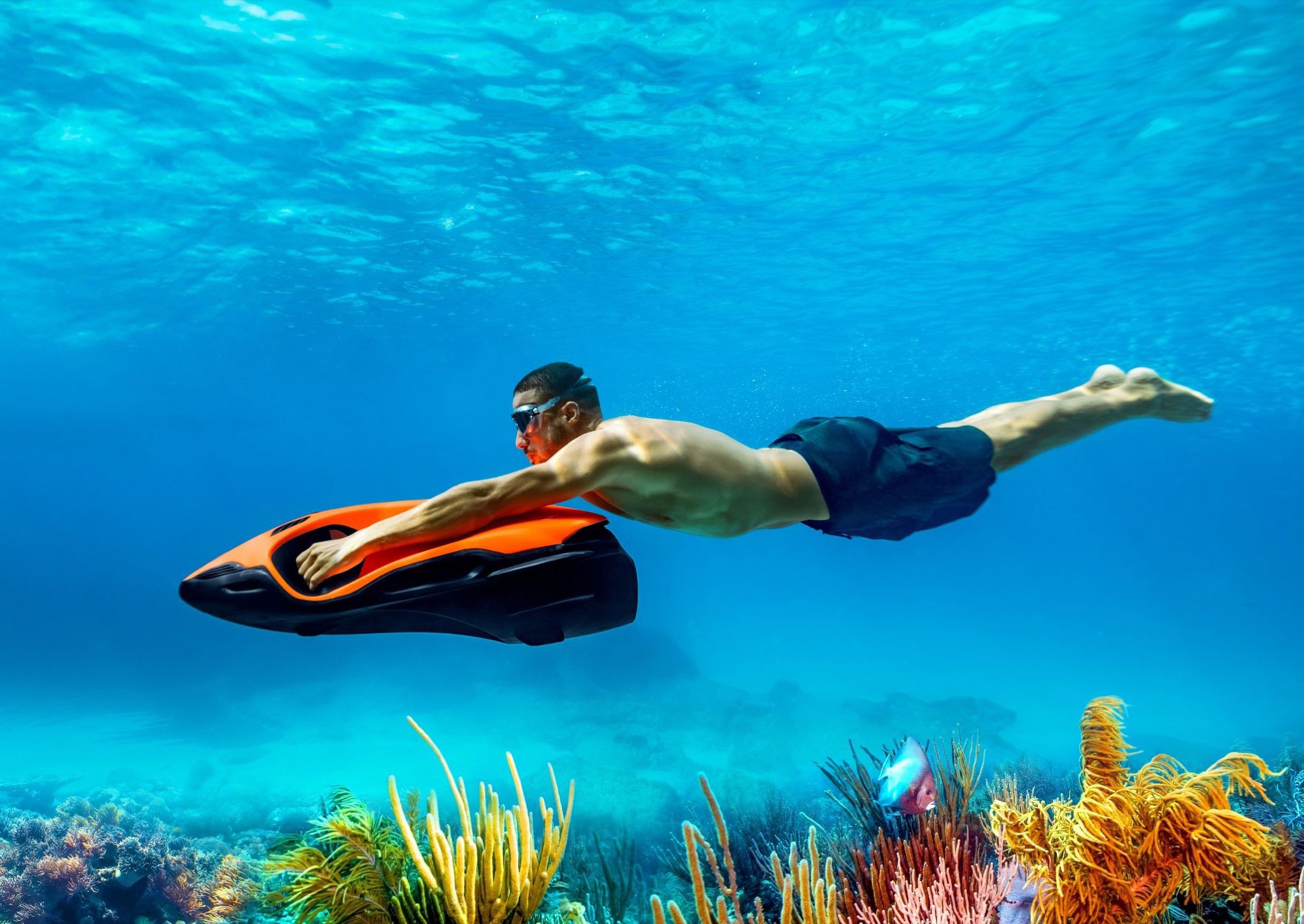 Jet propulsion with cinematic underwater glide.